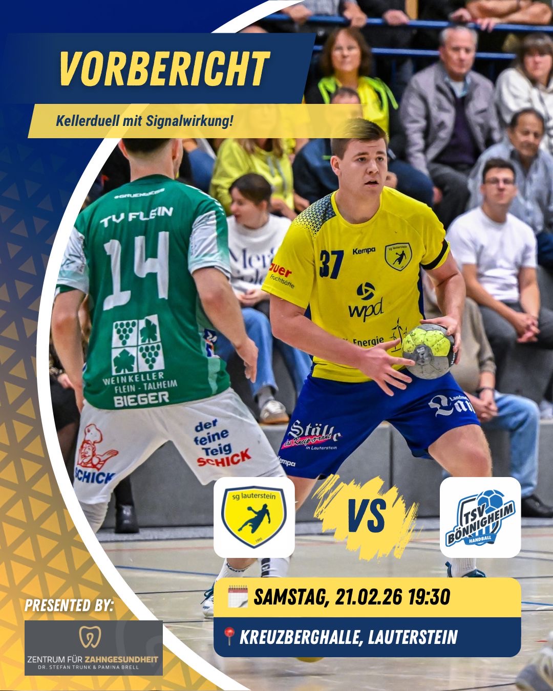 Beide Mannschaften teilen sich nach 16 Spielen Rang 13, mit 10:22 Punkten. Im Torverhältnis schenken sich die beiden Schlusslichter nicht viel. Das Hinspiel in Bönnigheim endete mit einem mehr oder weniger versöhnlichen Unentschieden. Am Ende trennten sich beide Mannschaften mit einem 30:30. Lauterstein konnte zwar in doppelter Unterzahl noch einen Führungstreffer erzielen, kassierte aber mit der Schlusssirene den Ausgleich.